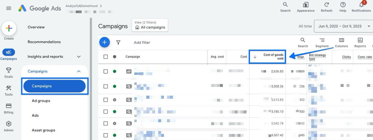 What Should You Do to See Cost of Goods Sold (COGS) Data in Google Ads?