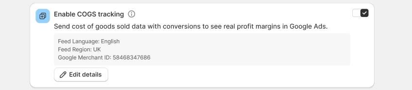- Reading COGS values: It detects the cost_of_goods_sold attribute from your Shopify product data or synced Merchant Center feed.